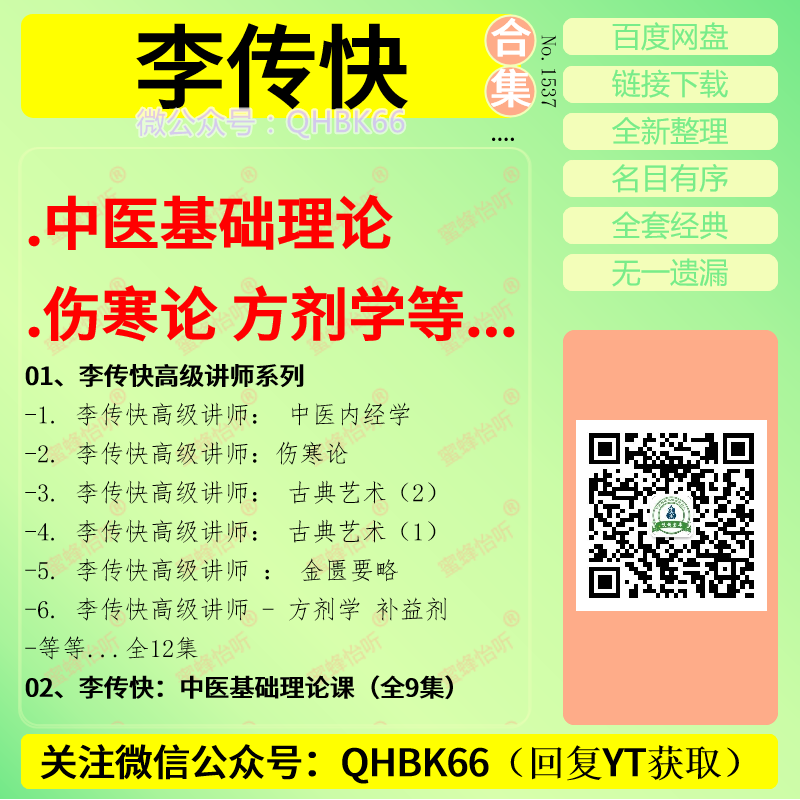 李传快中医基础理论 伤寒论方剂学等中医视频教程大全电子资料零基础入门到精通