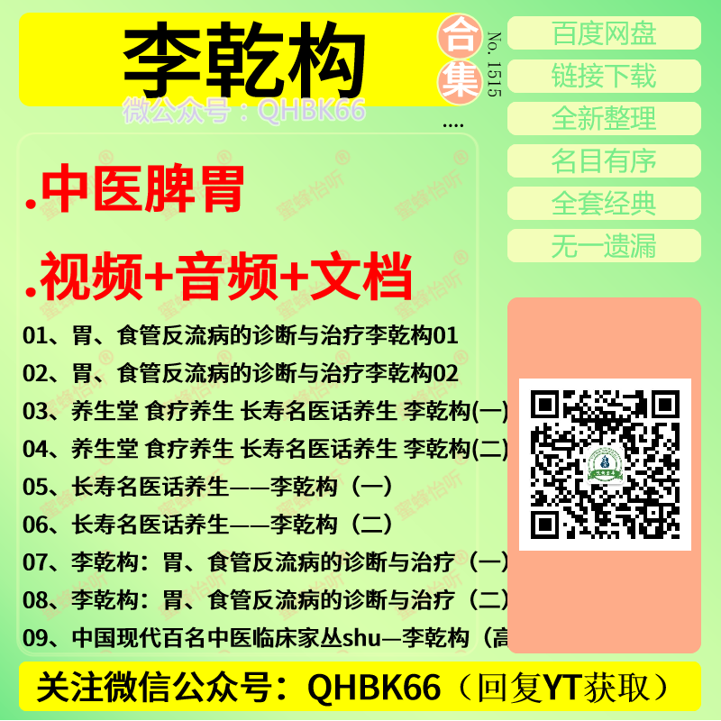 李乾构中医脾胃学 视频+音频+文档 中医视频教程大全电子资料零基础入门到精通