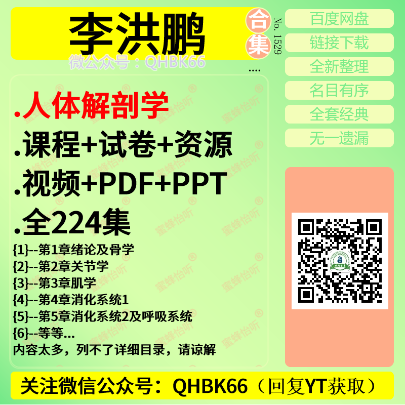 李洪鹏人体解剖学 视频+PDF+PPT 中医视频教程大全电子资料零基础入门到精通