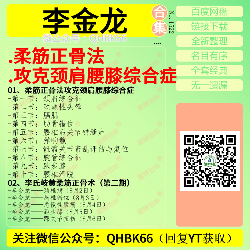 李金龙柔筋正骨法 攻克颈肩腰膝综合症中医视频教程大全电子资料零基础入门到精通