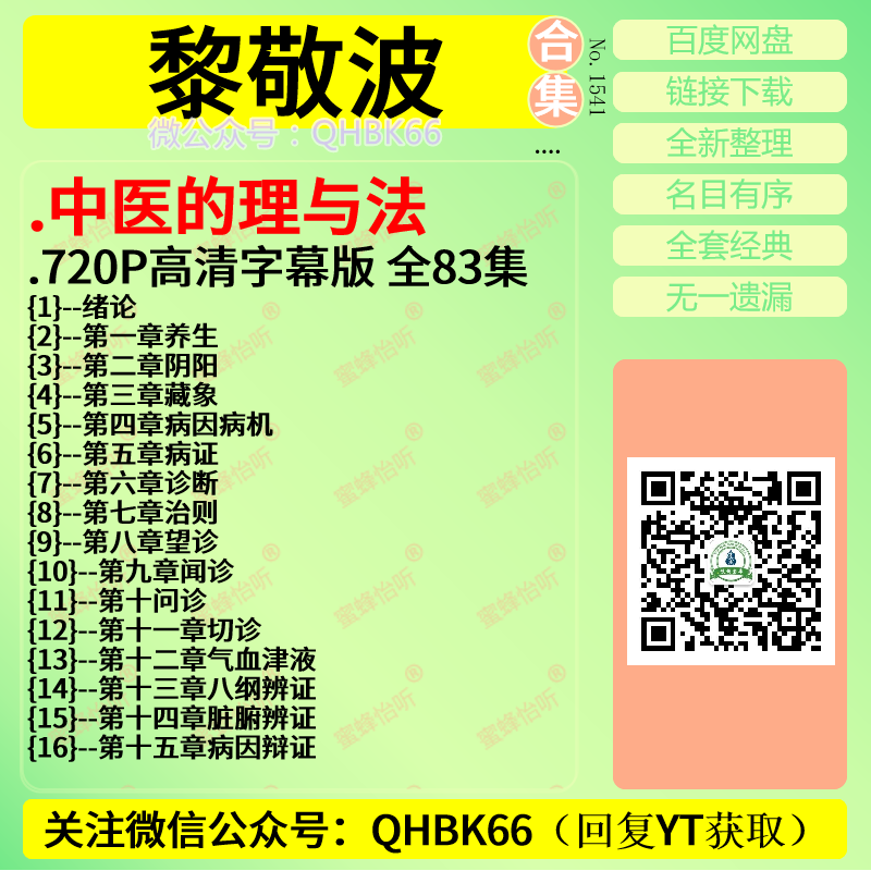 黎敬波中医的理与法720p高清字幕版全83集中医视频教程大全电子资料零基础入门到精通
