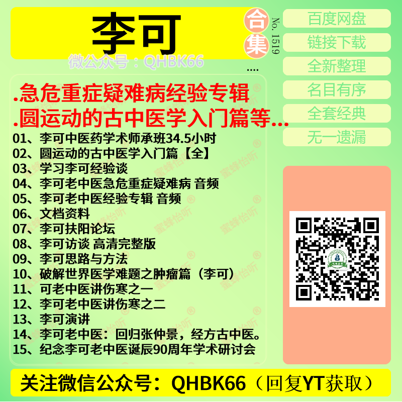 李可急危重症疑难病 圆运动的古中医学等中医视频教程大全电子资料零基础入门到精通