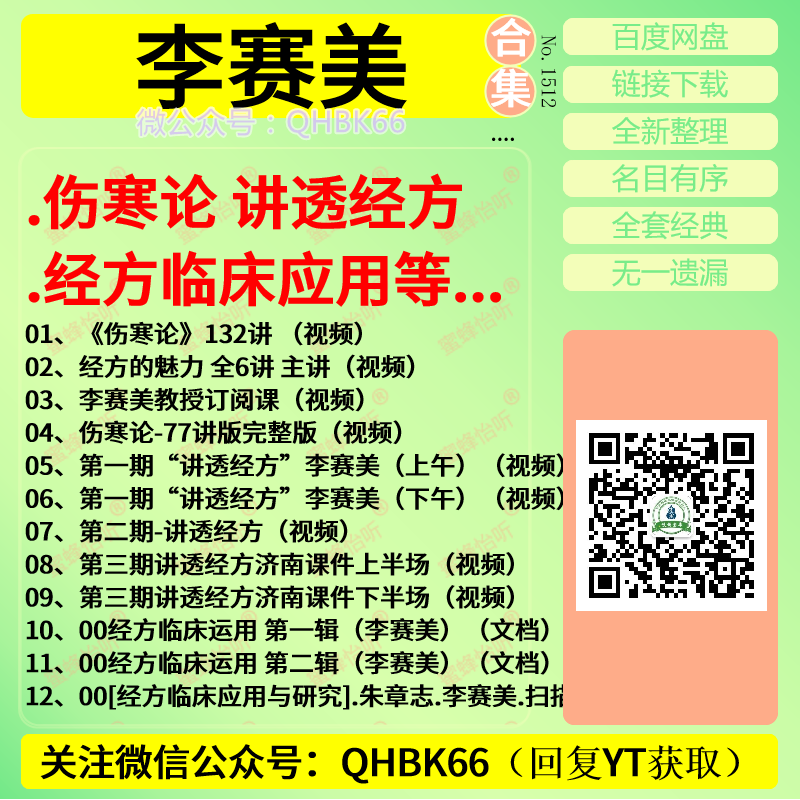 李赛美讲透经方 伤寒论 经方临床应用等中医视频教程大全电子资料零基础入门到精通