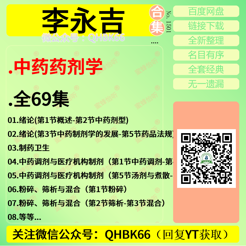 李永吉中药药剂学全69集中医视频教程大全电子资料零基础入门到精通