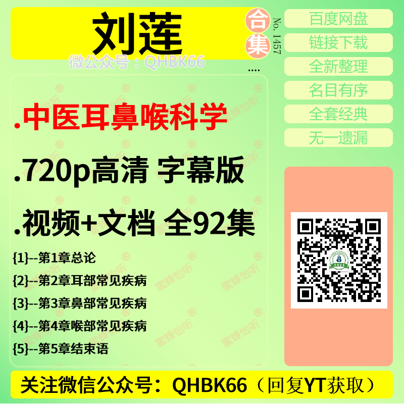 刘莲中医耳鼻喉科学视频文档全92集高清中医视频教程大全电子资料零基础入门到精通