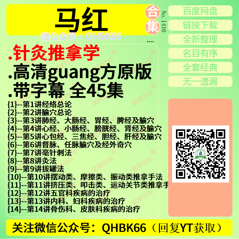 马红针灸推拿学高清视频带字幕全45集中医视频教程大全电子资料零基础入门到精通