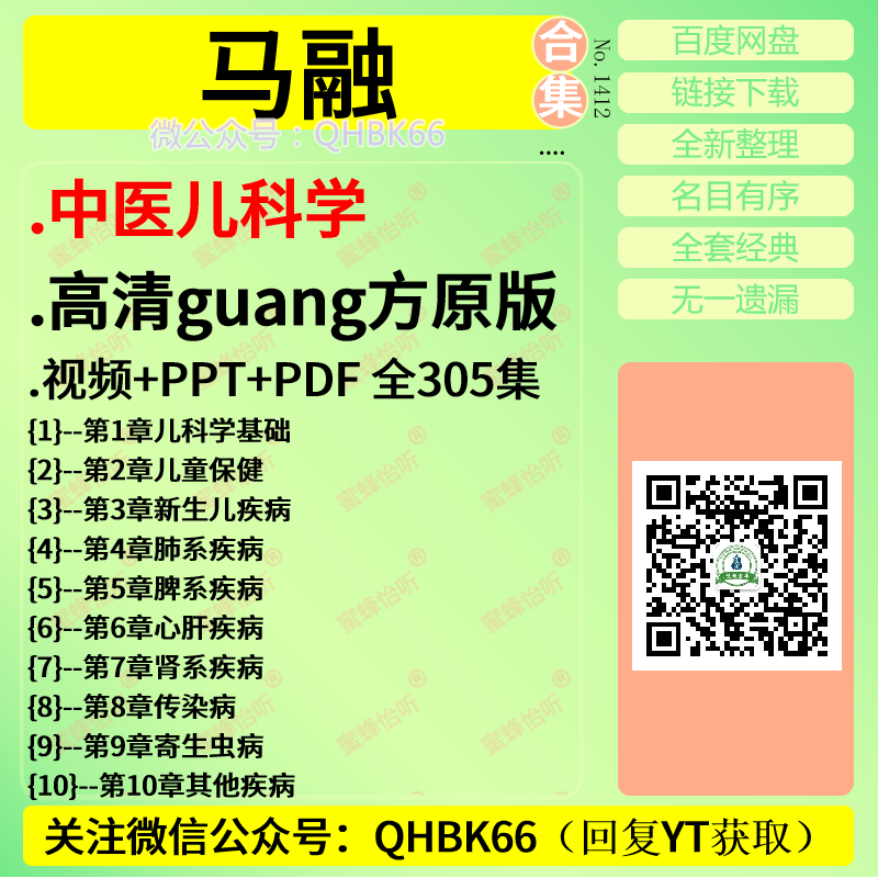 马融中医儿科学高清视频+文档全305集中医视频教程大全电子资料零基础入门到精通