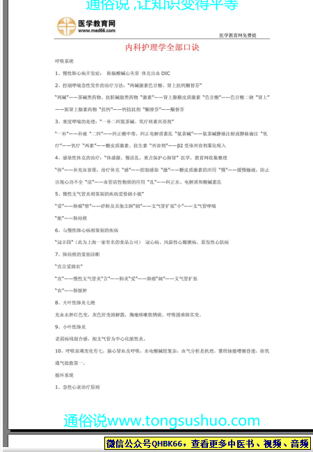 内科护理学全部口诀!(1)