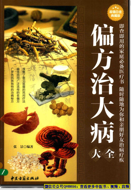 偏方治大病大全本站专注中医资源,涵盖视频,音频,电子文档等等等……关注微信公众号【QHBK66】,回复对应编码,获网盘下载地址。 更多中医视频,音频,电子书等《中医超级资源库》目录,查看网址:https://qr09.cn/FDjI4p