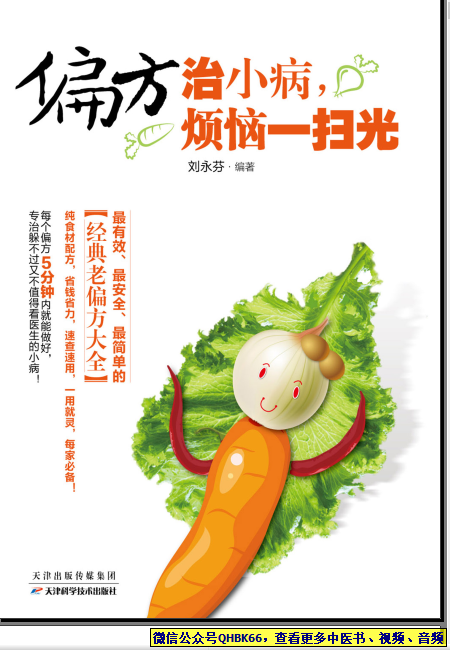 偏方治小病 烦恼一扫光本站专注中医资源,涵盖视频,音频,电子文档等等等……关注微信公众号【QHBK66】,回复对应编码,获网盘下载地址。 更多中医视频,音频,电子书等《中医超级资源库》目录,查看网址:https://qr09.cn/FDjI4p