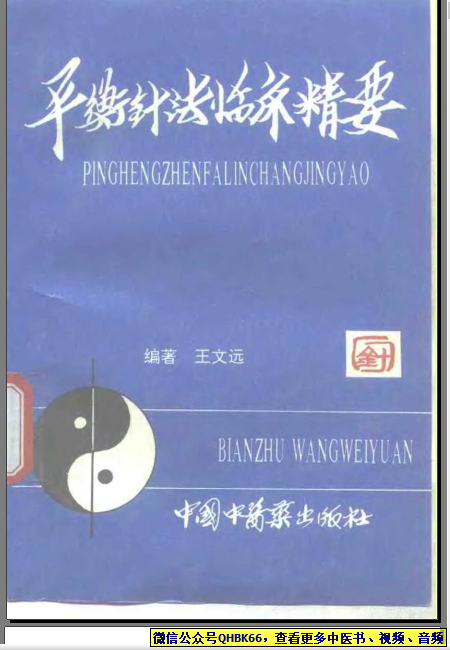 平衡针法临床精要本站专注中医资源,涵盖视频,音频,电子文档等等等……关注微信公众号【QHBK66】,回复对应编码,获网盘下载地址。 更多中医视频,音频,电子书等《中医超级资源库》目录,查看网址:https://qr09.cn/FDjI4p