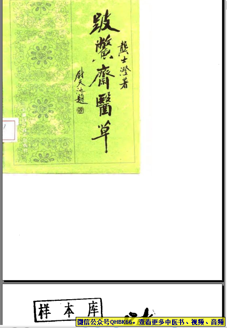 破蟞斋医草-龚士澄本站专注中医资源,涵盖视频,音频,电子文档等等等……关注微信公众号【QHBK66】,回复对应编码,获网盘下载地址。 更多中医视频,音频,电子书等《中医超级资源库》目录,查看网址:https://qr09.cn/FDjI4p