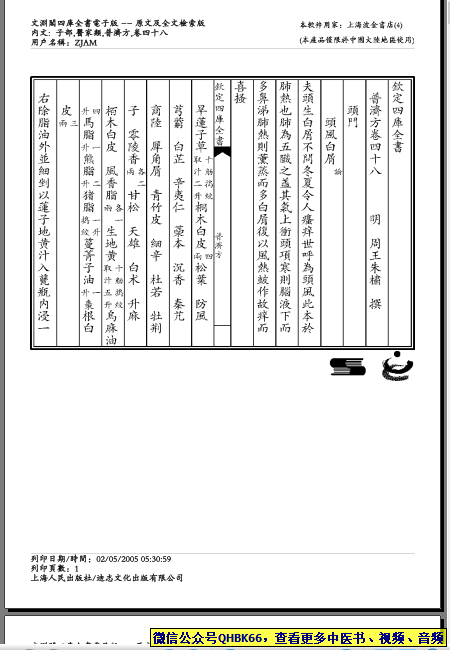 普济方-048本站专注中医资源,涵盖视频,音频,电子文档等等等……关注微信公众号【QHBK66】,回复对应编码,获网盘下载地址。 更多中医视频,音频,电子书等《中医超级资源库》目录,查看网址:https://qr09.cn/FDjI4p