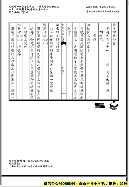 普济方-061本站专注中医资源,涵盖视频,音频,电子文档等等等……关注微信公众号【QHBK66】,回复对应编码,获网盘下载地址。 更多中医视频,音频,电子书等《中医超级资源库》目录,查看网址:https://qr09.cn/FDjI4p