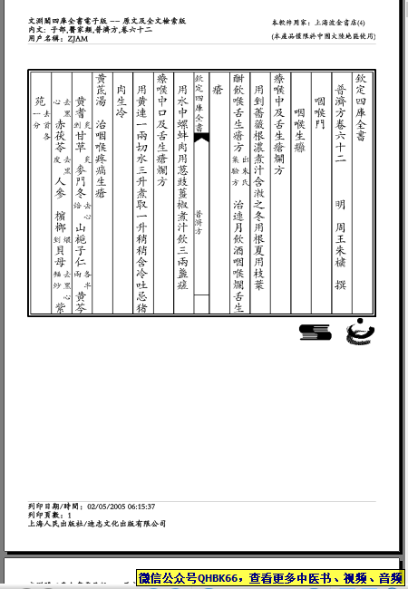 普济方-062本站专注中医资源,涵盖视频,音频,电子文档等等等……关注微信公众号【QHBK66】,回复对应编码,获网盘下载地址。 更多中医视频,音频,电子书等《中医超级资源库》目录,查看网址:https://qr09.cn/FDjI4p