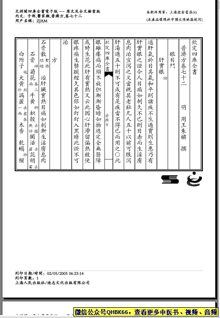普济方-072本站专注中医资源,涵盖视频,音频,电子文档等等等……关注微信公众号【QHBK66】,回复对应编码,获网盘下载地址。 更多中医视频,音频,电子书等《中医超级资源库》目录,查看网址:https://qr09.cn/FDjI4p