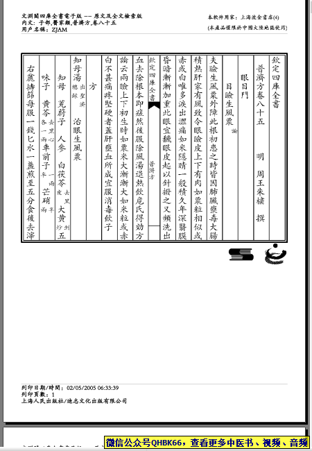 普济方-085本站专注中医资源,涵盖视频,音频,电子文档等等等……关注微信公众号【QHBK66】,回复对应编码,获网盘下载地址。 更多中医视频,音频,电子书等《中医超级资源库》目录,查看网址:https://qr09.cn/FDjI4p