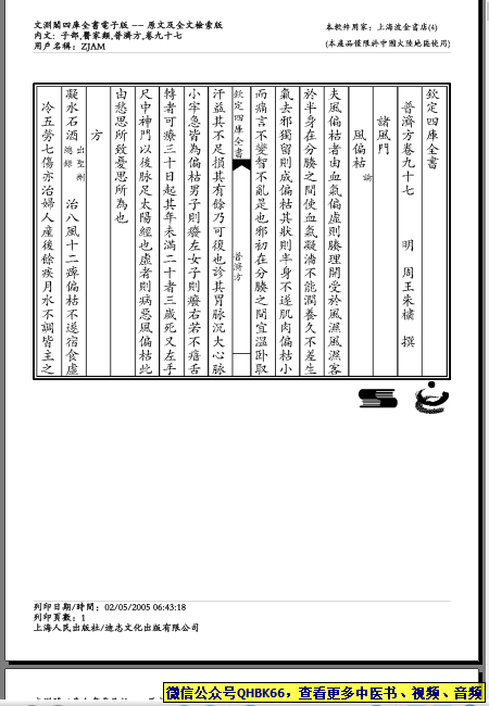 普济方-097本站专注中医资源,涵盖视频,音频,电子文档等等等……关注微信公众号【QHBK66】,回复对应编码,获网盘下载地址。 更多中医视频,音频,电子书等《中医超级资源库》目录,查看网址:https://qr09.cn/FDjI4p