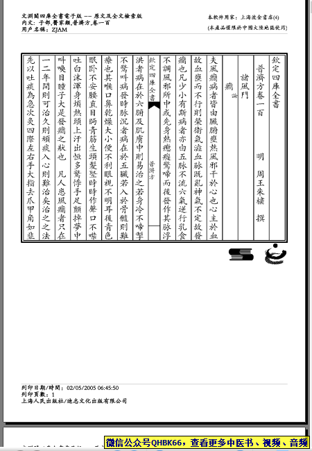普济方-100本站专注中医资源,涵盖视频,音频,电子文档等等等……关注微信公众号【QHBK66】,回复对应编码,获网盘下载地址。 更多中医视频,音频,电子书等《中医超级资源库》目录,查看网址:https://qr09.cn/FDjI4p