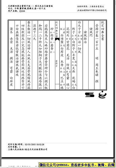 普济方-115本站专注中医资源,涵盖视频,音频,电子文档等等等……关注微信公众号【QHBK66】,回复对应编码,获网盘下载地址。 更多中医视频,音频,电子书等《中医超级资源库》目录,查看网址:https://qr09.cn/FDjI4p