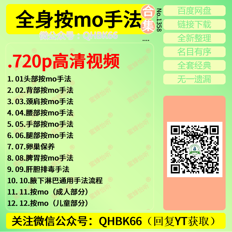 全身按mo手法720p高清中医视频教程大全电子资料零基础入门到精通