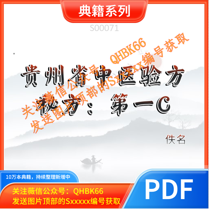 S00071.贵州省中医验方秘方:第一C佚名PDF电子书古籍网盘下载