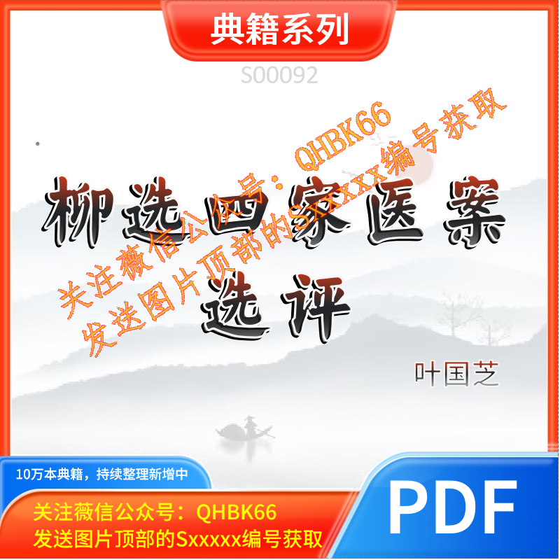 S00092.柳选四家医案选评叶国芝PDF电子书古籍网盘下载