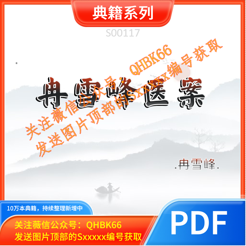 S00117.冉雪峰医案.冉雪峰.PDF电子书古籍网盘下载