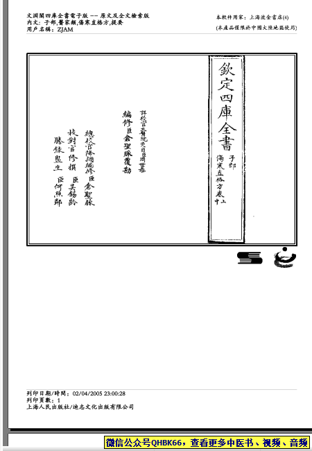 伤寒直格方-刘完素本站专注中医资源,涵盖视频,音频,电子文档等等等……关注微信公众号【QHBK66】,回复对应编码,获网盘下载地址。 更多中医视频,音频,电子书等《中医超级资源库》目录,查看网址:https://qr09.cn/FDjI4p