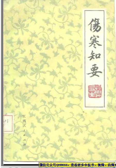 伤寒知要(万友生)本站专注中医资源,涵盖视频,音频,电子文档等等等……关注微信公众号【QHBK66】,回复对应编码,获网盘下载地址。 更多中医视频,音频,电子书等《中医超级资源库》目录,查看网址:https://qr09.cn/FDjI4p