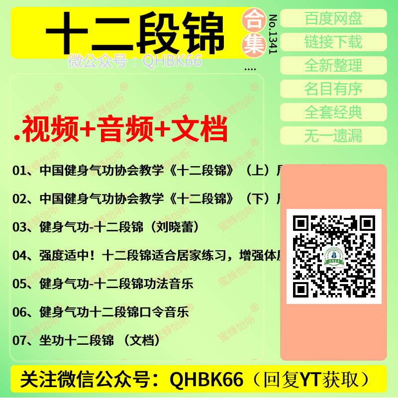 十二段锦健身气功功法视频音频文档中医视频教程大全电子资料零基础入门到精通