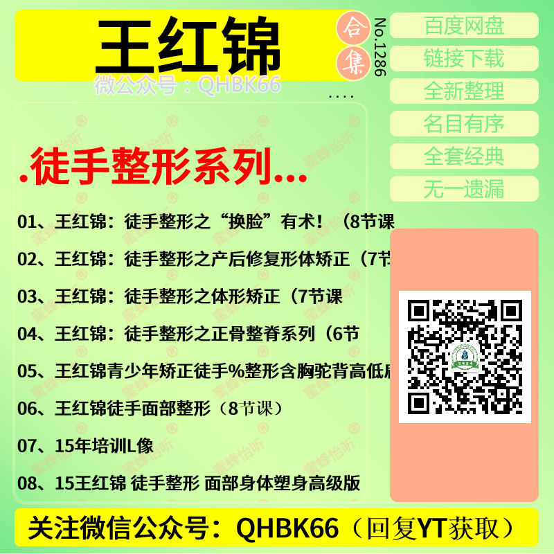王红锦徒手整形系列中医视频教程大全电子资料零基础入门到精通
