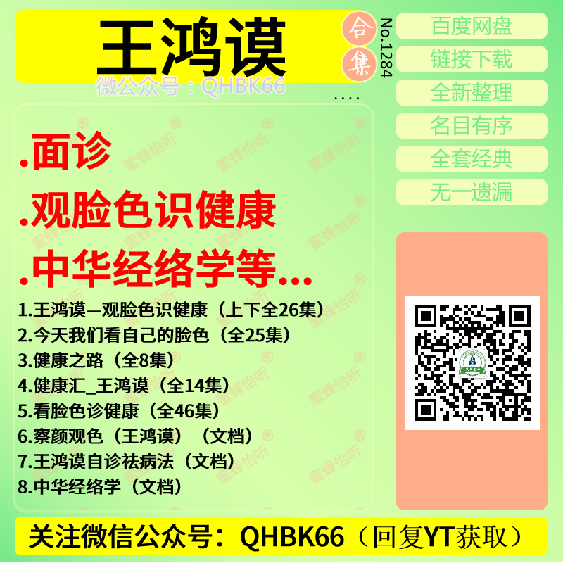 王鸿谟中医面诊观脸色识健康中华经络学中医视频教程大全电子资料零基础入门到精通