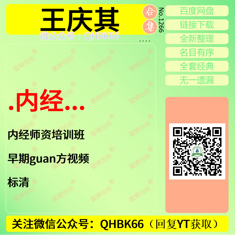 王庆其内经师资培训班中医视频教程大全电子资料零基础入门到精通