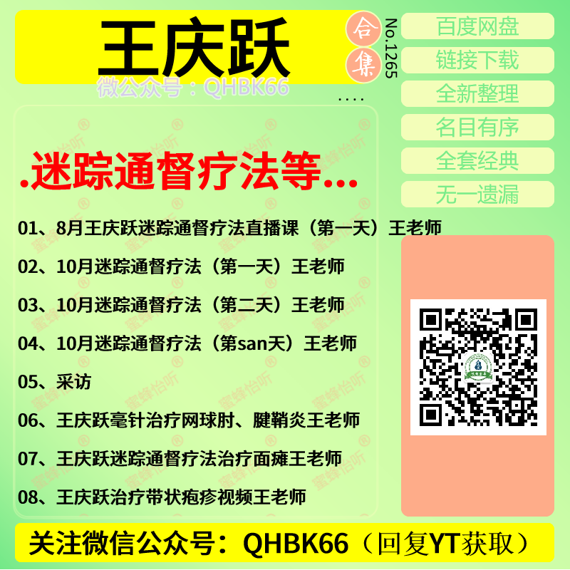 王庆跃迷踪通骤疗法中医视频教程大全电子资料零基础入门到精通