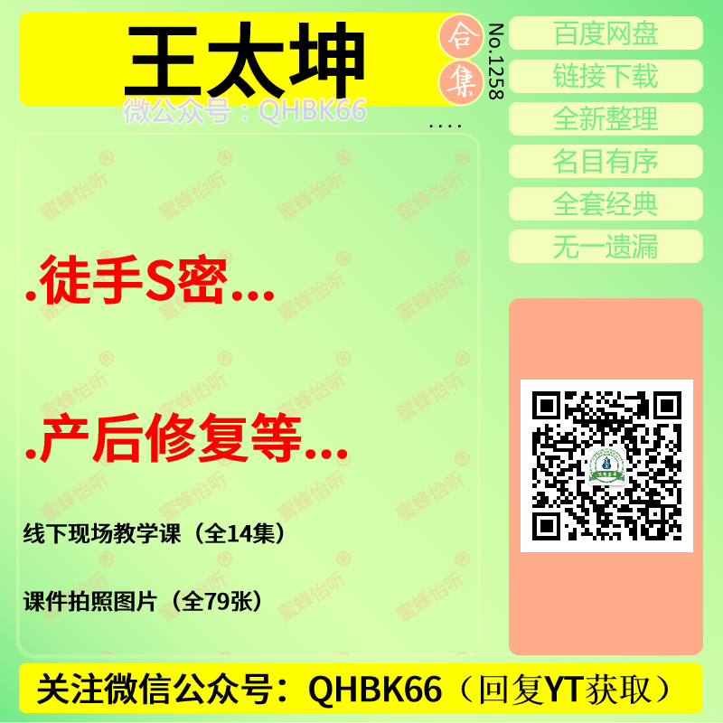 王太坤徒手S密产后修复中医视频教程大全电子资料零基础入门到精通
