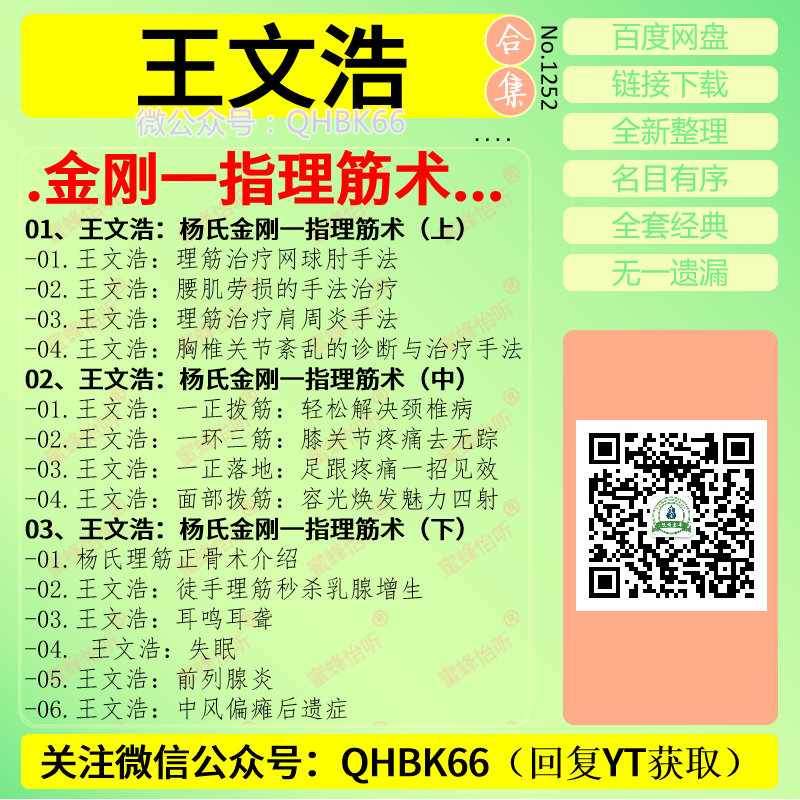王文浩金刚一指理筋术中医视频教程大全电子资料零基础入门到精通