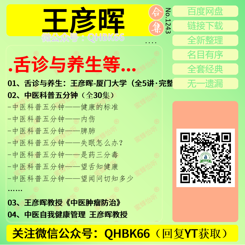 王彦晖舌诊与养生中医视频教程大全电子资料零基础入门到精通