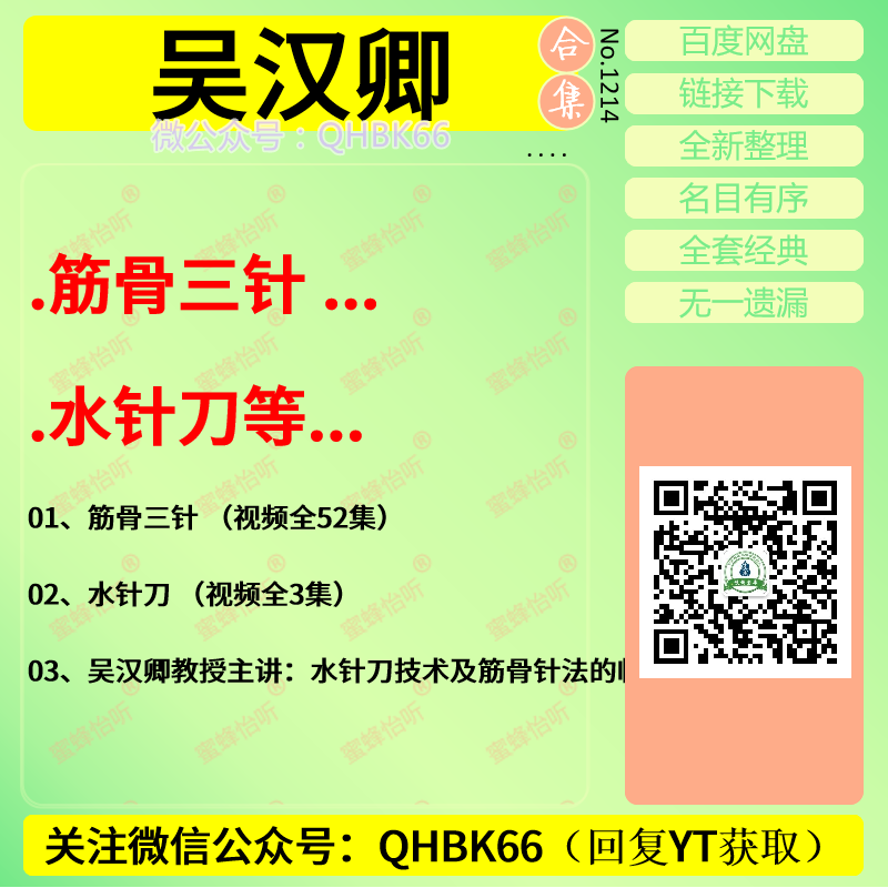吴汉卿筋骨三针中医视频教程大全电子资料零基础入门到精通