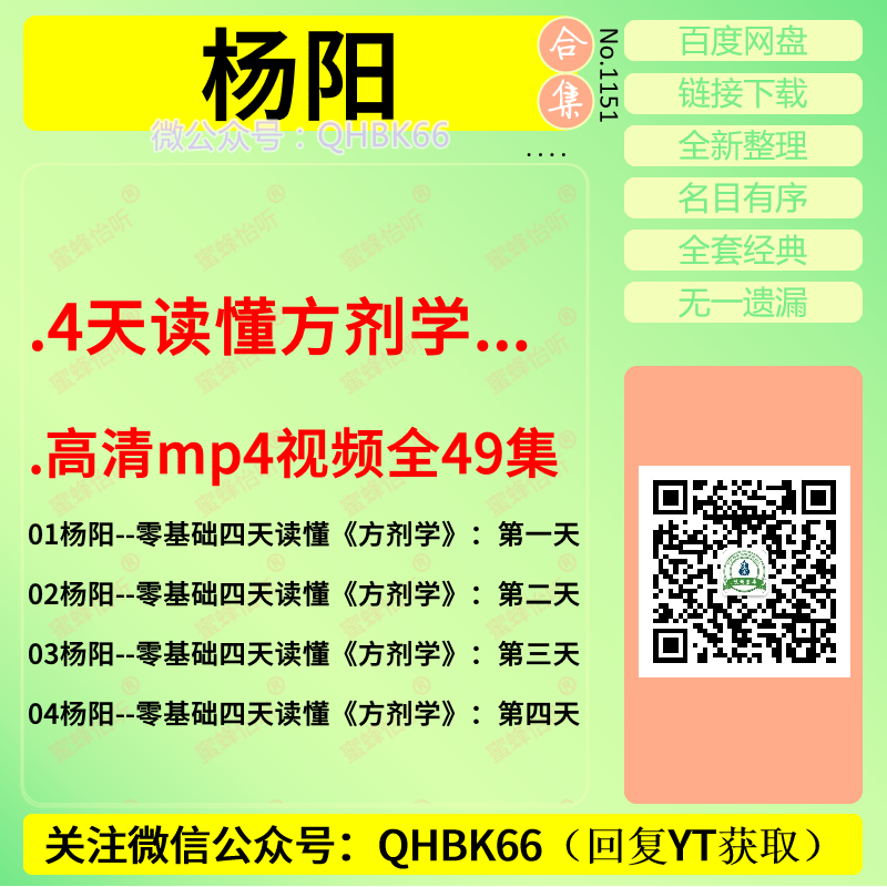 杨阳4天读懂方剂学中医视频教程大全电子资料零基础入门到精通