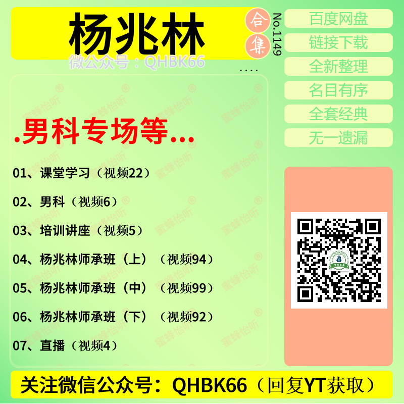 杨兆林男科专场中医视频教程大全电子资料零基础入门到精通