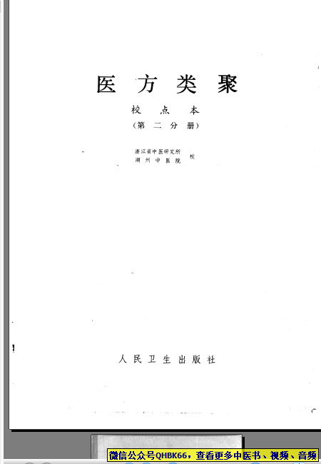 医方类聚(第02册)本站专注中医资源,涵盖视频,音频,电子文档等等等……关注微信公众号【QHBK66】,回复对应编码,获网盘下载地址。 更多中医视频,音频,电子书等《中医超级资源库》目录,查看网址:https://qr09.cn/FDjI4p