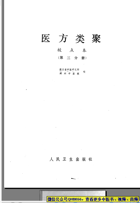 医方类聚(第03册)本站专注中医资源,涵盖视频,音频,电子文档等等等……关注微信公众号【QHBK66】,回复对应编码,获网盘下载地址。 更多中医视频,音频,电子书等《中医超级资源库》目录,查看网址:https://qr09.cn/FDjI4p