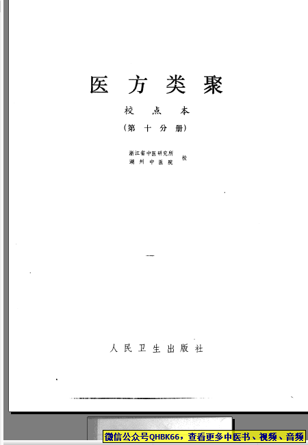 医方类聚(第10册)本站专注中医资源,涵盖视频,音频,电子文档等等等……关注微信公众号【QHBK66】,回复对应编码,获网盘下载地址。 更多中医视频,音频,电子书等《中医超级资源库》目录,查看网址:https://qr09.cn/FDjI4p