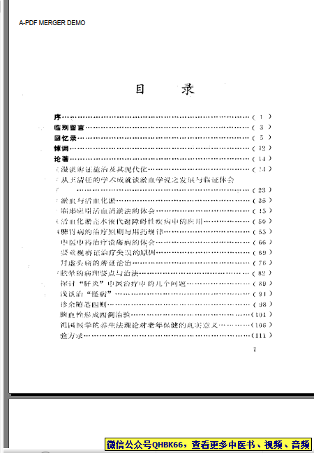 医海丹心本站专注中医资源,涵盖视频,音频,电子文档等等等……关注微信公众号【QHBK66】,回复对应编码,获网盘下载地址。 更多中医视频,音频,电子书等《中医超级资源库》目录,查看网址:https://qr09.cn/FDjI4p