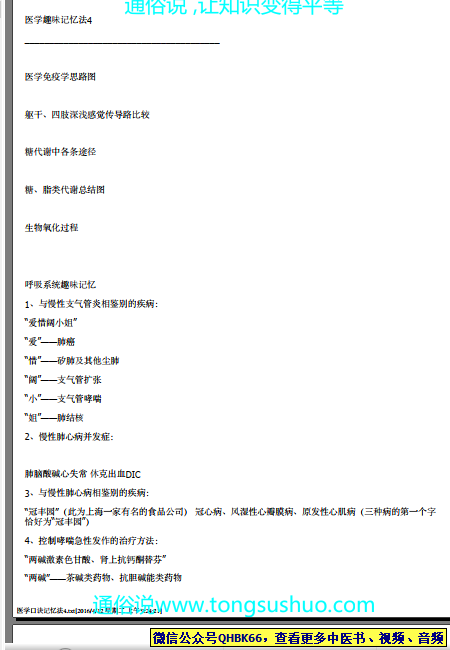 医学口诀记忆法4本站专注中医资源,涵盖视频,音频,电子文档等等等……关注微信公众号【QHBK66】,回复对应编码,获网盘下载地址。 更多中医视频,音频,电子书等《中医超级资源库》目录,查看网址:https://qr09.cn/FDjI4p