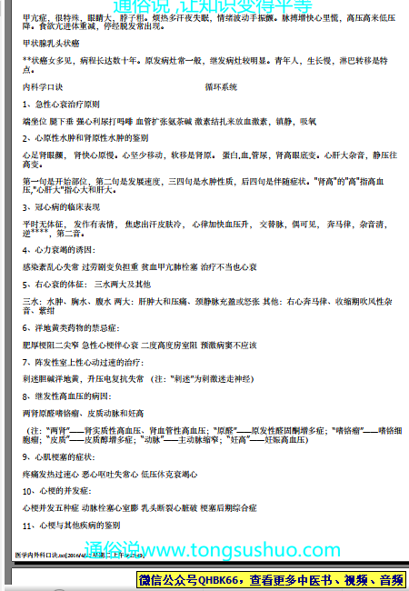 医学内外科口诀本站专注中医资源,涵盖视频,音频,电子文档等等等……关注微信公众号【QHBK66】,回复对应编码,获网盘下载地址。 更多中医视频,音频,电子书等《中医超级资源库》目录,查看网址:https://qr09.cn/FDjI4p