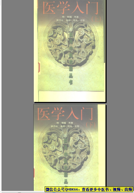 医学入门(上、下本站专注中医资源,涵盖视频,音频,电子文档等等等……关注微信公众号【QHBK66】,回复对应编码,获网盘下载地址。 更多中医视频,音频,电子书等《中医超级资源库》目录,查看网址:https://qr09.cn/FDjI4p