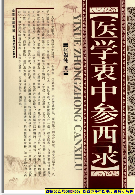 医学衷中参西录(高清版)本站专注中医资源,涵盖视频,音频,电子文档等等等……关注微信公众号【QHBK66】,回复对应编码,获网盘下载地址。 更多中医视频,音频,电子书等《中医超级资源库》目录,查看网址:https://qr09.cn/FDjI4p