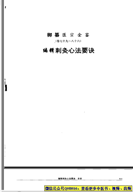 医宗金鉴-14-刺灸心法本站专注中医资源,涵盖视频,音频,电子文档等等等……关注微信公众号【QHBK66】,回复对应编码,获网盘下载地址。 更多中医视频,音频,电子书等《中医超级资源库》目录,查看网址:https://qr09.cn/FDjI4p